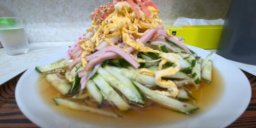 最初は何も加えずに…やや固めに茹でてあり、冷製のためか、つゆの味は濃いめ。