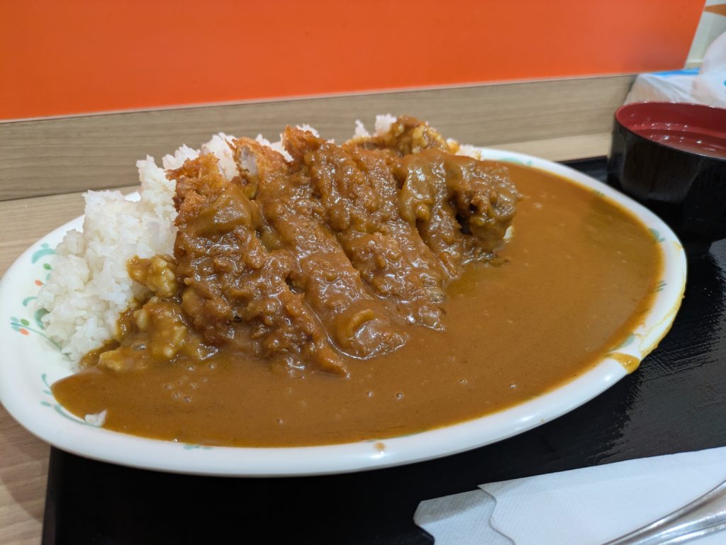 大盛りはとにかくライスの量がえげつない(2合近いとの噂も!)。 普通に食べ進めると最後は「ライスだけ」になりかねないため、「ルーとカツの配分」というマネジメント能力が試されます。